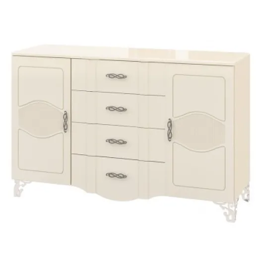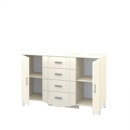 Comoda TV Neman Sofia МН-025-19 (140 cm), Крем глянец / Декор фрез с серебрян патиной