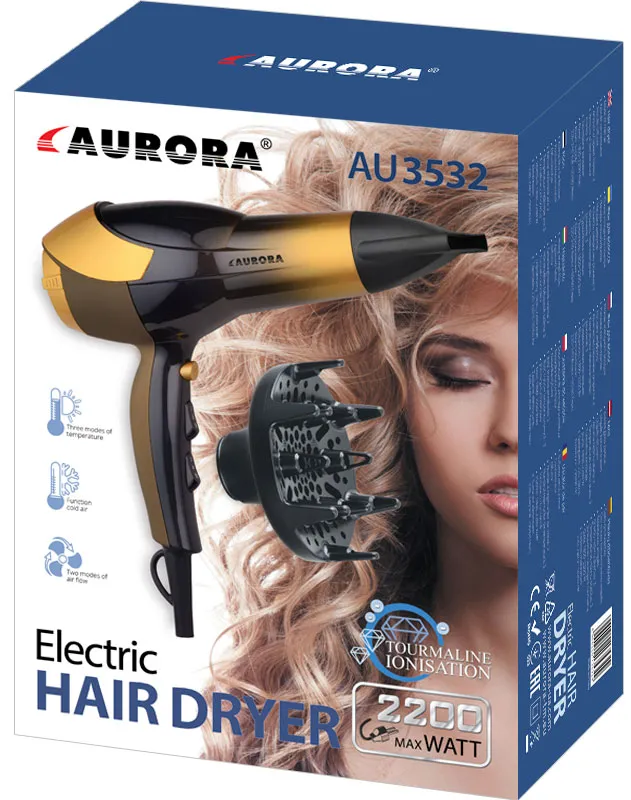 Uscător de păr Aurora AU3532, 2200 W, Black/Gold
