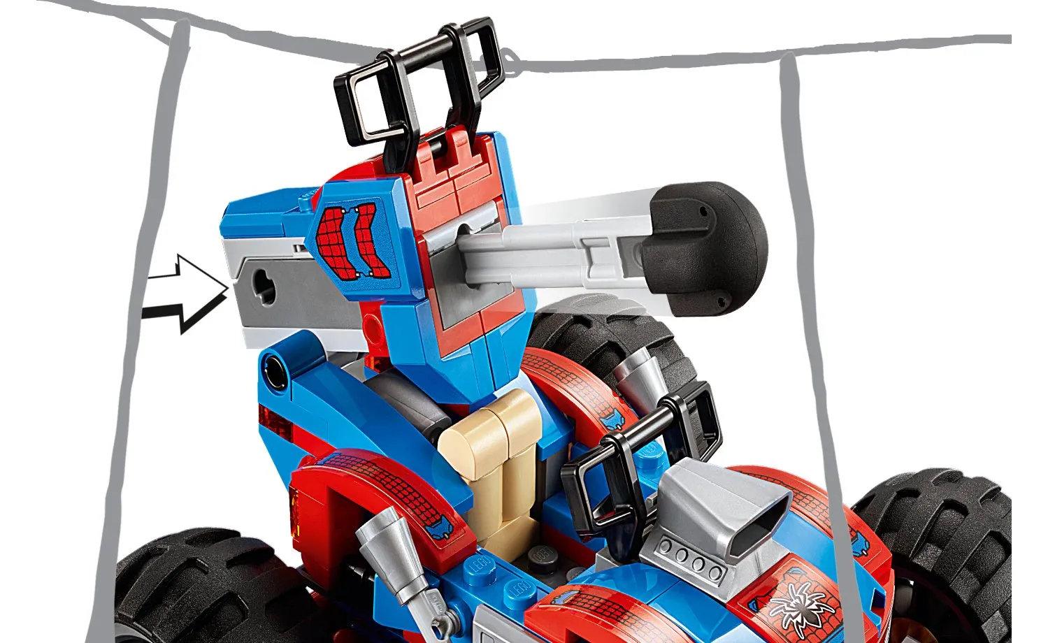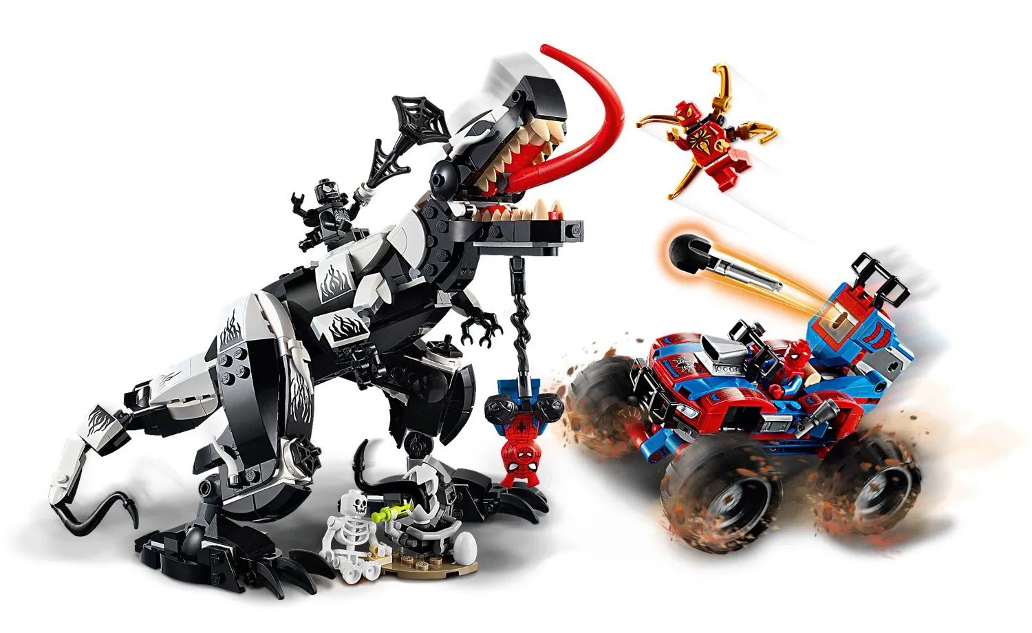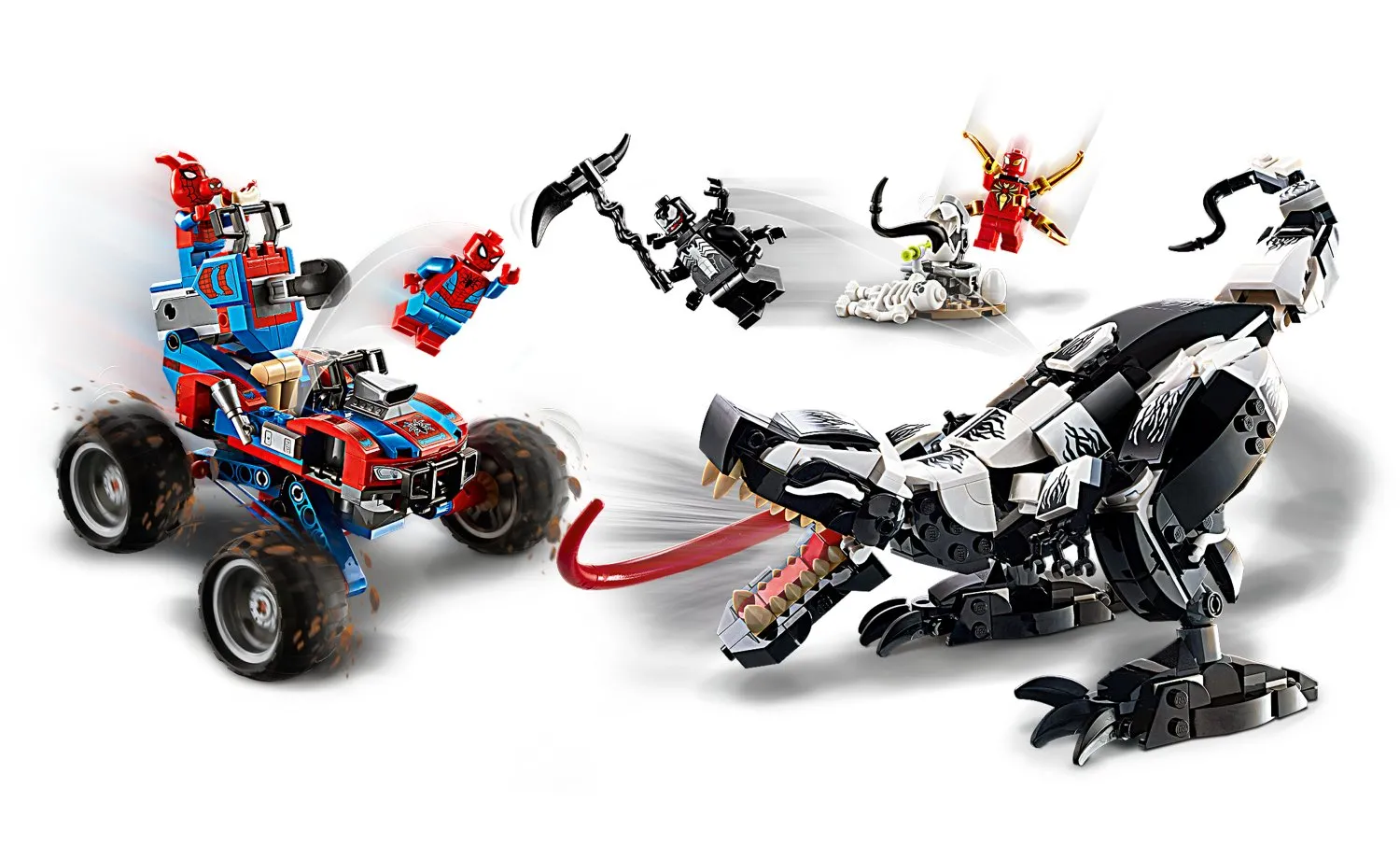 Fanii Marvel pot recrea scenele lor preferate și pot inventa propriile aventuri cu minifigurine LEGO Spider-Man, Iron Spider, Spider-Ham și Venom care se luptă pe oul lui Venom. Joaca creativă trece la un nivel nou cu puternicul Venomosaurus, cu fălcile sale zdrobitoare și armele cu pânză de păianjen neagră și cu mega mașina lui Spider-Man echipată cu arme și suspensie.