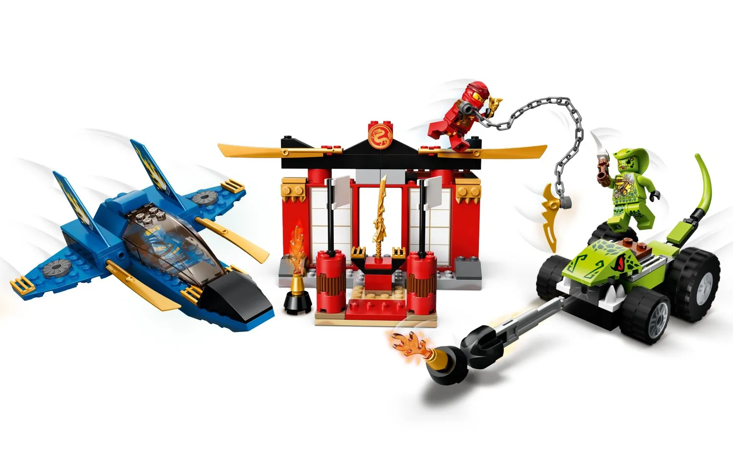 - Setul NINJAGO Legacy Intrecere cu avionul de luptă include un avion ninja și o mașină cu lansator, încurajând fanii ninja să pună în scenă bătălii palpitante din serialul TV NINJAGO Maeștrii Spinjitzu.