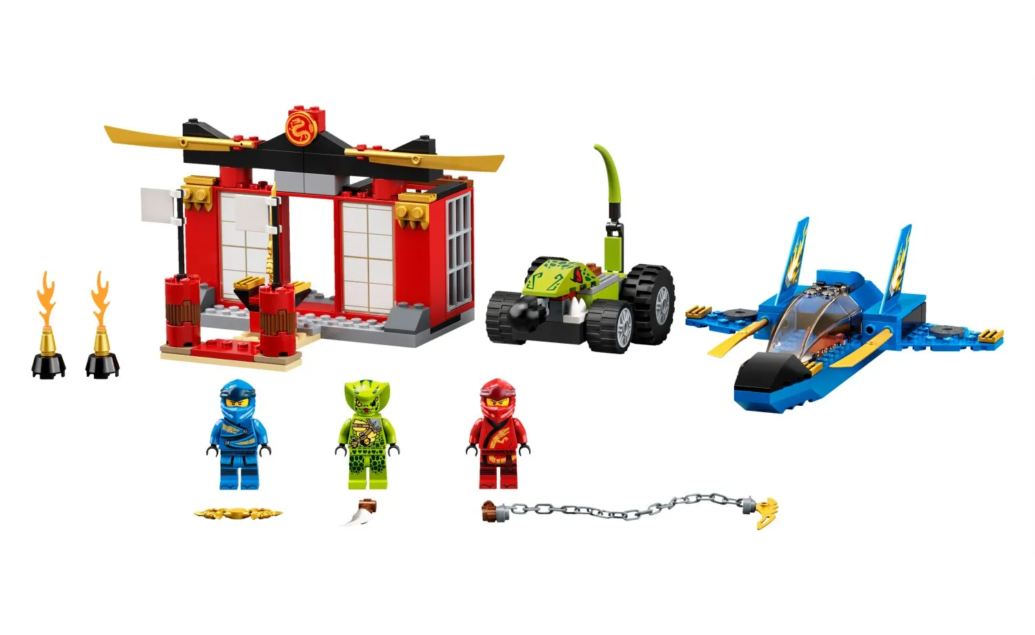 - Acest set LEGO® NINJAGO® prezintă aventurile palpitante ale lui Kai și Jay împotriva lui Lasha, fiind inspirat din sezoanele clasice ale serialului TV. Acest pachet de bătălie NINJAGO este perfect pentru a-I ajuta pe copiii preșcolari să își dezvolte abilitățile de construcție.