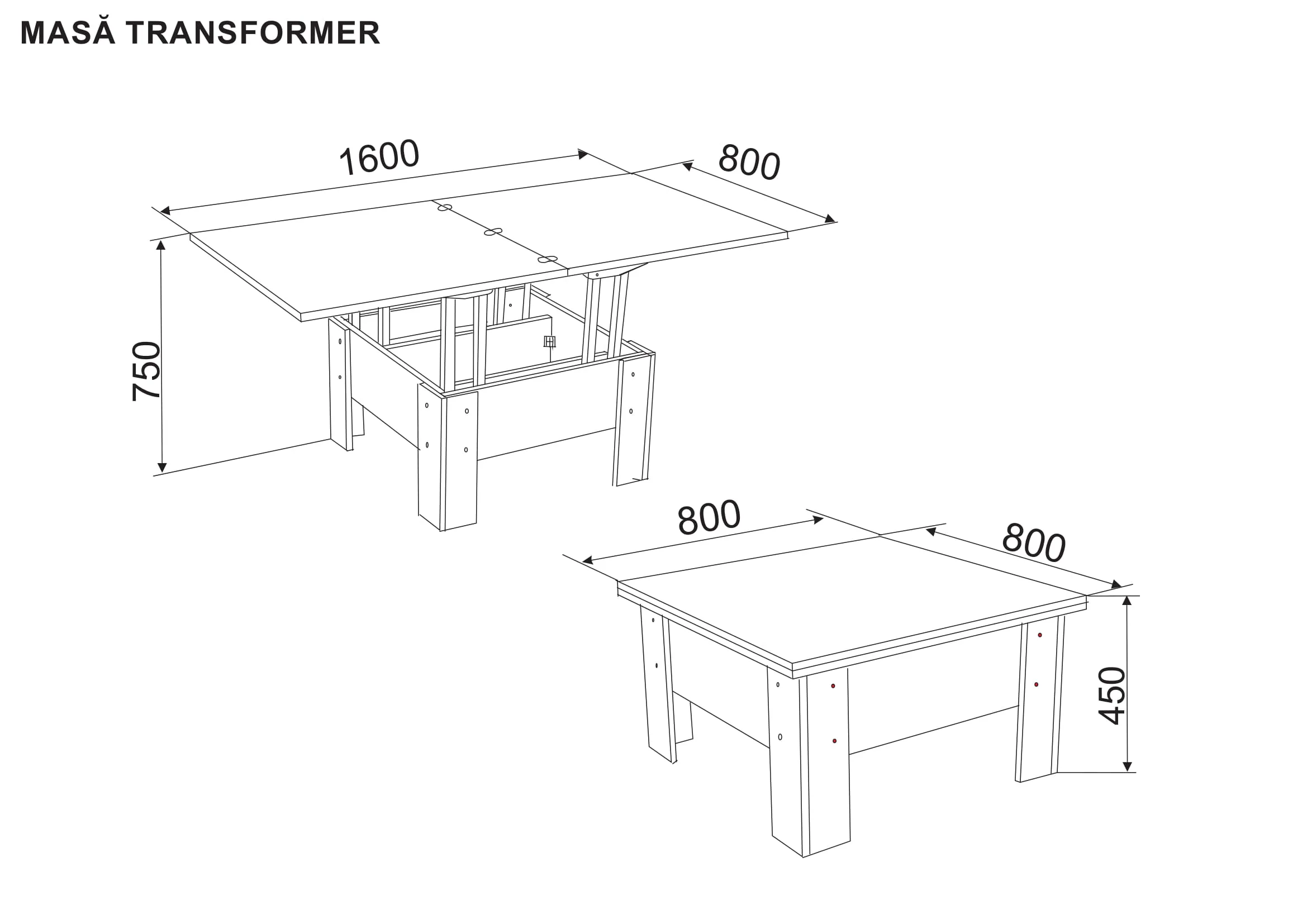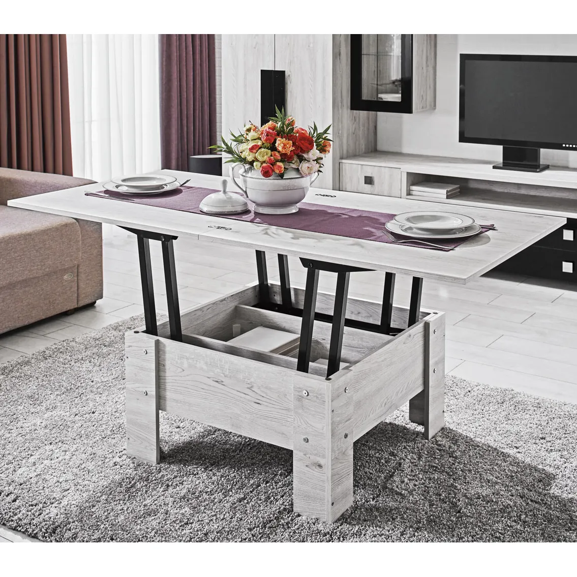 Măsuţă cafea Ambianta Transformer cu mecanism de ridicare, White Samoa