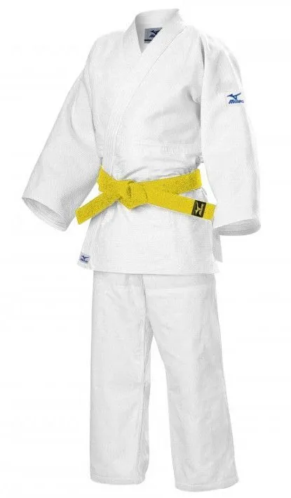Кимоно Mizuno - модель белого цвета для начинающих спортсменов. Кимоно для дзюдо состоит из: куртки (уваги) и брюк (дзубон или ситабаки). В данной модели пояс не предусмотрен. Его можно купить отдельно. Куртка изготовлена из высококачественного хлопка с "рисово-зернистой" фактурой. Внутри находится этикетка с синим логотипом бренда. Логотип также присутствует на воротнике, на левом рукаве и внизу куртки. Воротник, манжеты и подол укреплены. В брюках до роста 150 см предусмотрен эластичный пояс, от 160 см и выше - жесткая подвязка. Зона колена усилена. Под правым коленом - ярлык с синим логотипом. Чтобы выбрать кимоно для дзюдо для ребенка, вам необходимо измерить его рост и учесть, что после стирки кимоно дает усадку порядка 5 %, то есть выбирать необходимо размер на 5-7 сантиметров выше текущего роста юного спортсмена.