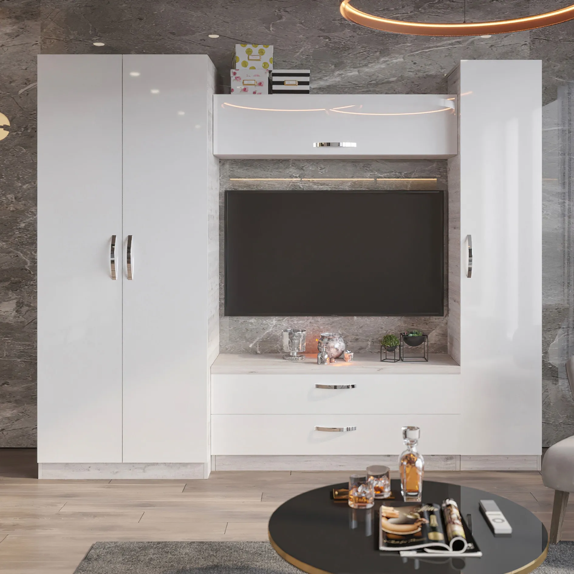 Living Bafimob Iulia X (TV-1,2) (240 cm), Corton Stejar/Alb
