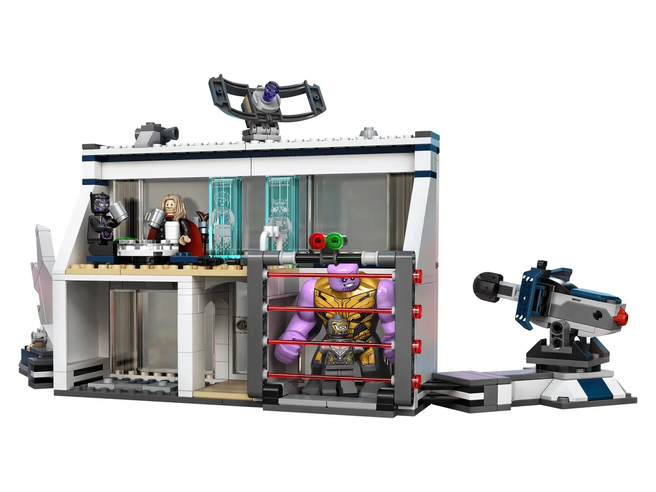 Copiii se alătură unei distribuții impresionante de personaje LEGO Marvel - Thor, Captain America, Black Panther, Iron Man, Scarlet Witch, Ant-Man, Thanos și Războinicul Centauri. La baza Avengers îi așteaptă nesfârșite aventuri de super-eroi. Setul este plin de caracteristici care inspiră jocul creativ: în laborator, Iron Man își asamblează minunatele nano-mănuși; supereroii se pot aduna în zona de recreere și întâlnire; baza are o celulă de închisoare și chiar un camion care se deschide pentru a arăta o mașină a timpului.