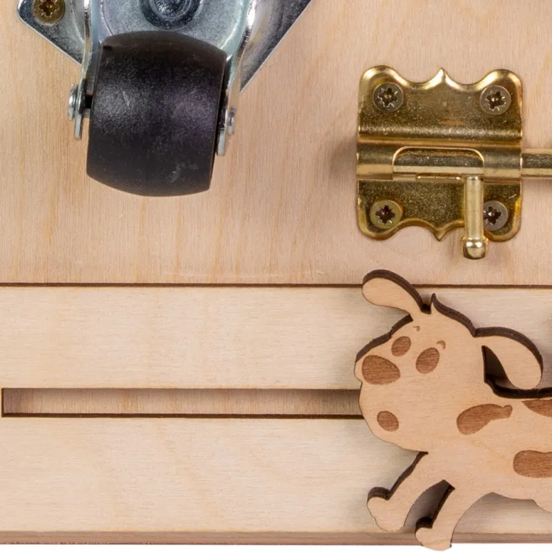 Busy board este fabricată din materiale naturale și verificată cu atenție pentru a respecta toate standardele. Nu provoacă alergii și este complet sigur pentru copil.