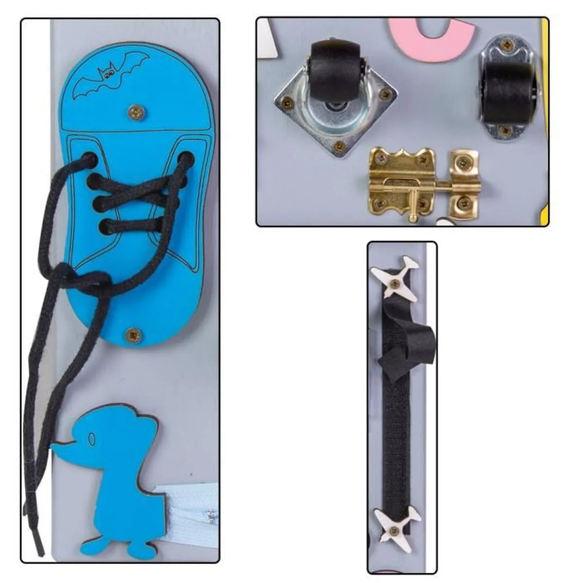 Busy board este fabricată din materiale naturale și verificată cu atenție pentru a respecta toate standardele. Nu provoacă alergii și este complet sigur pentru copil.