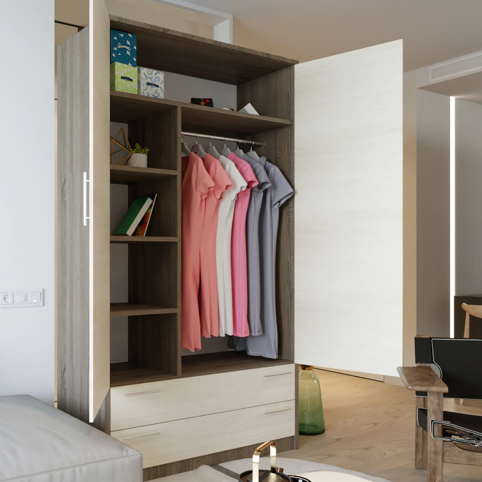 Dulap pentru haine PS S-120(2) (120 cm), Trufel /Chamonix deschis