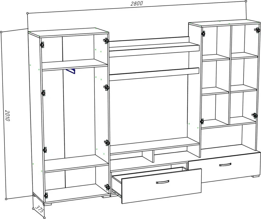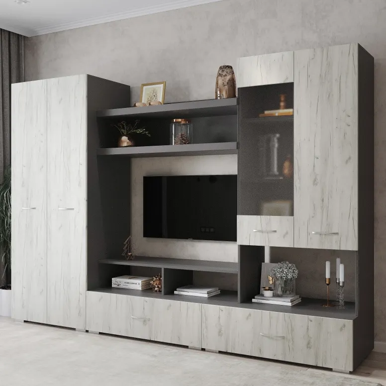 Living ML-Mobila ML-1 v1 (280 cm), Anthracite / Oak craft white