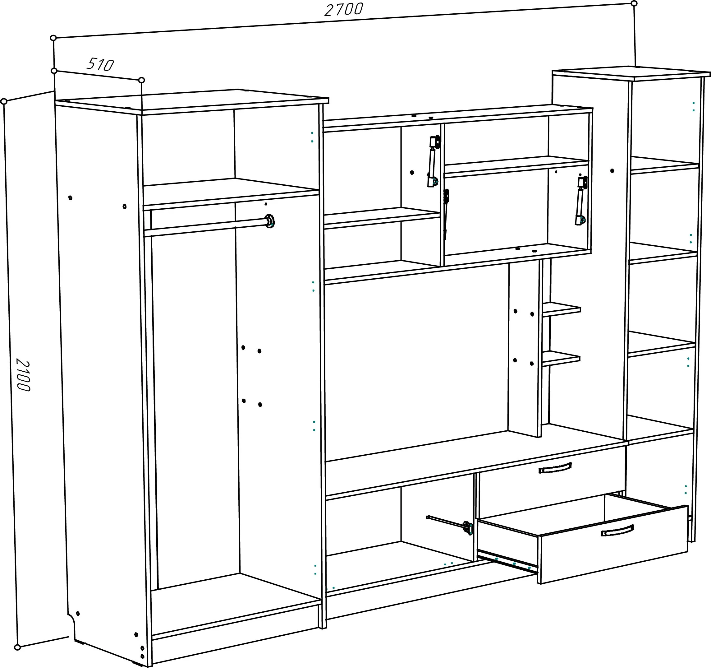 Living ML-Mobila ML-3 (265 cm), Anthracite / Oak craft white
