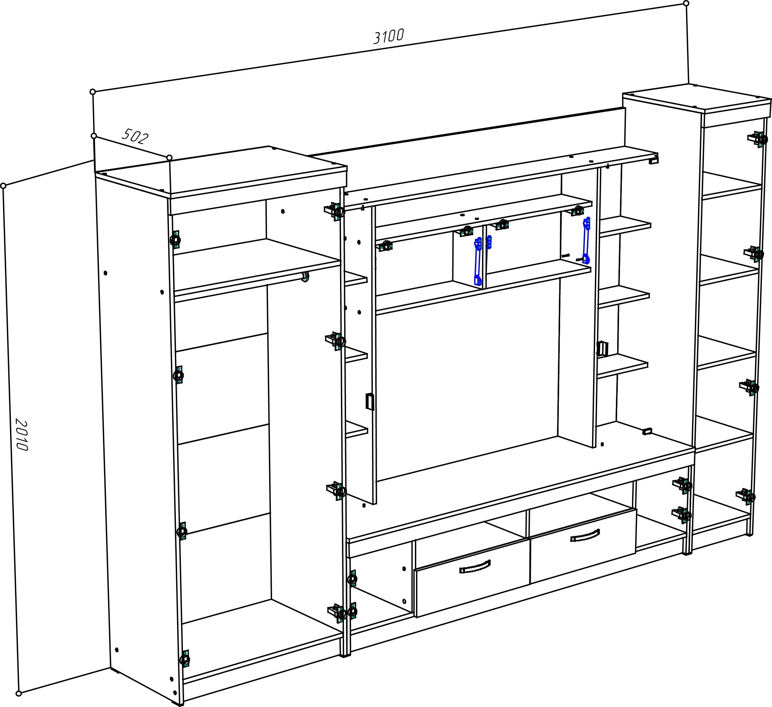 Living ML-Mobila ML-2 (310 cm), Gold oak / Nymph white