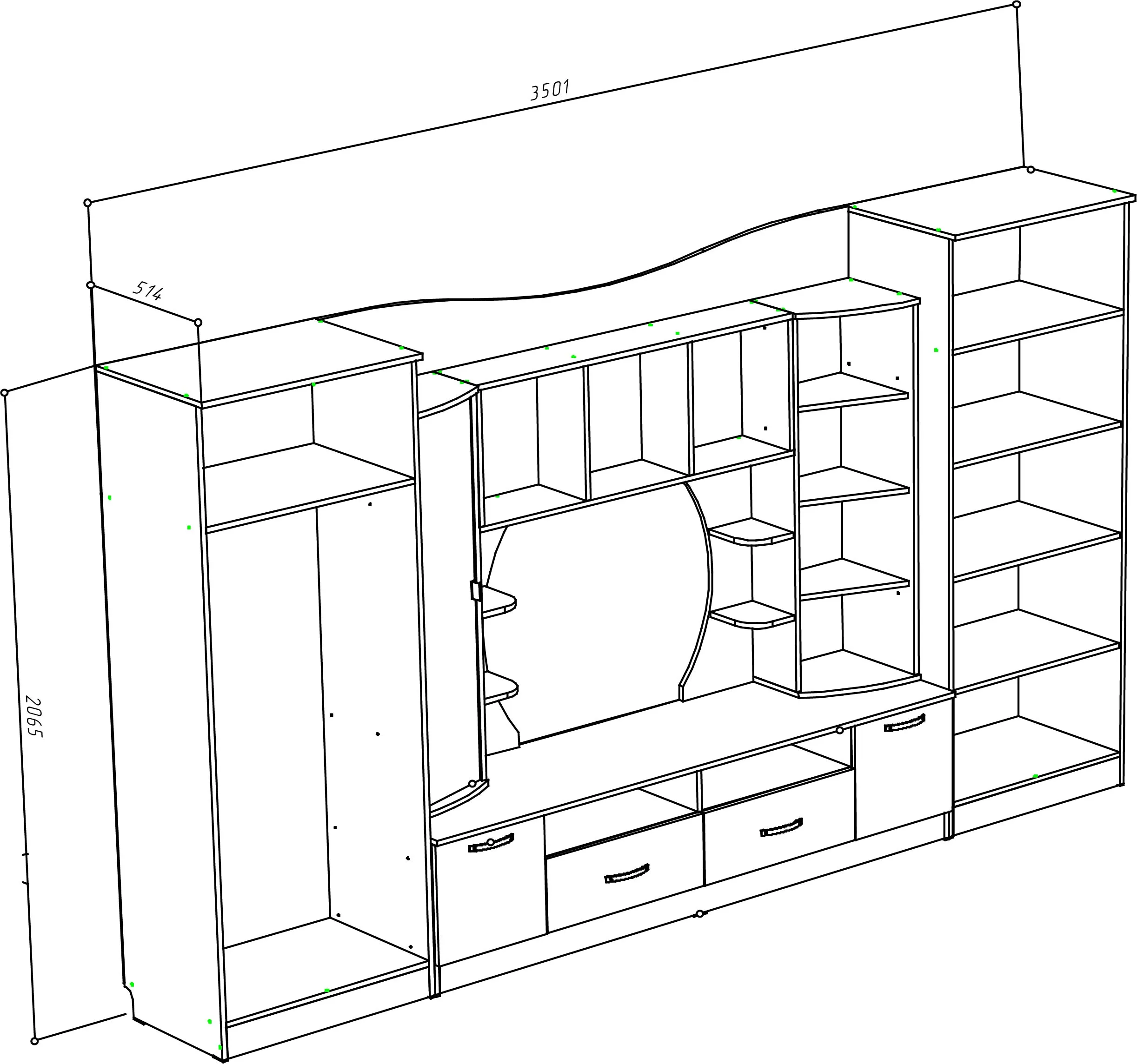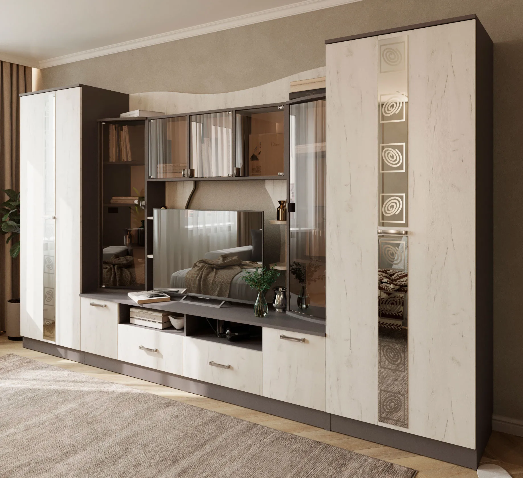 Living ML-Mobila МЛ-8 (350 cm), Antracit / Stejar craft alb
