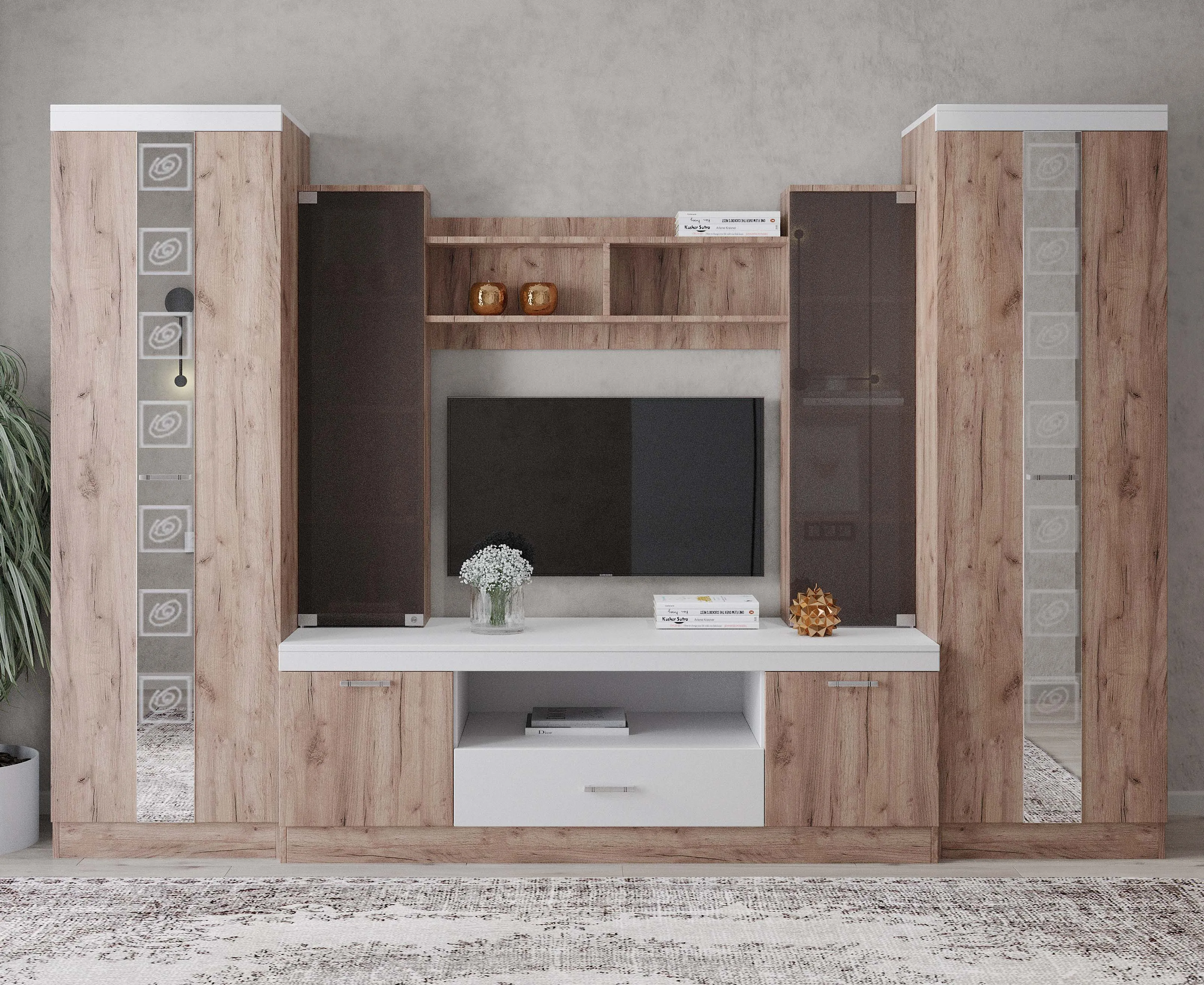 Living ML-Mobila ML-6 v1 (290 cm), Stejar auriu/ Alb