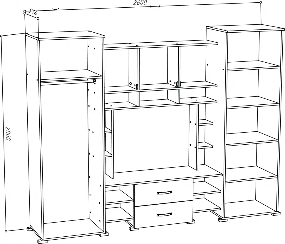 Living ML-Mobila ML-9 (260 cm), Stejar auriu/ Alb