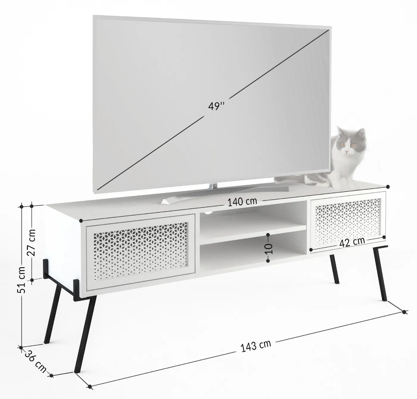 Comoda TV Showdeko Naive M.TV.23264.2 (143 cm), White