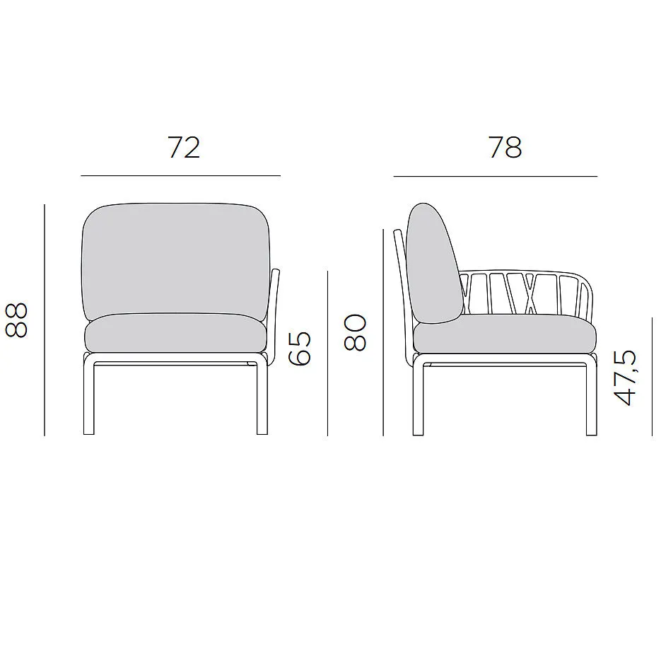 Fotoliu pentru gradina modul dreapta / stânga Nardi Komodo Elemento Terminale DX/SX 40372.02.138 Antracite/Ghiaccio Sunbrella