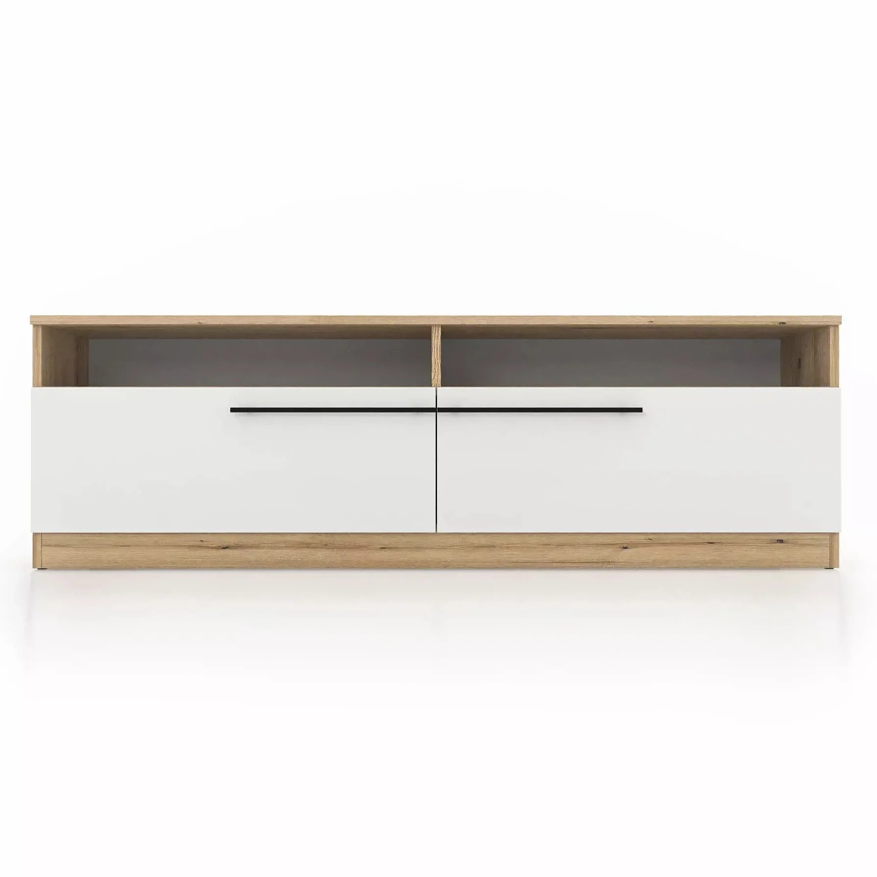 Comoda TV Barcas (160 cm), Stejar Evok/Alb lucios