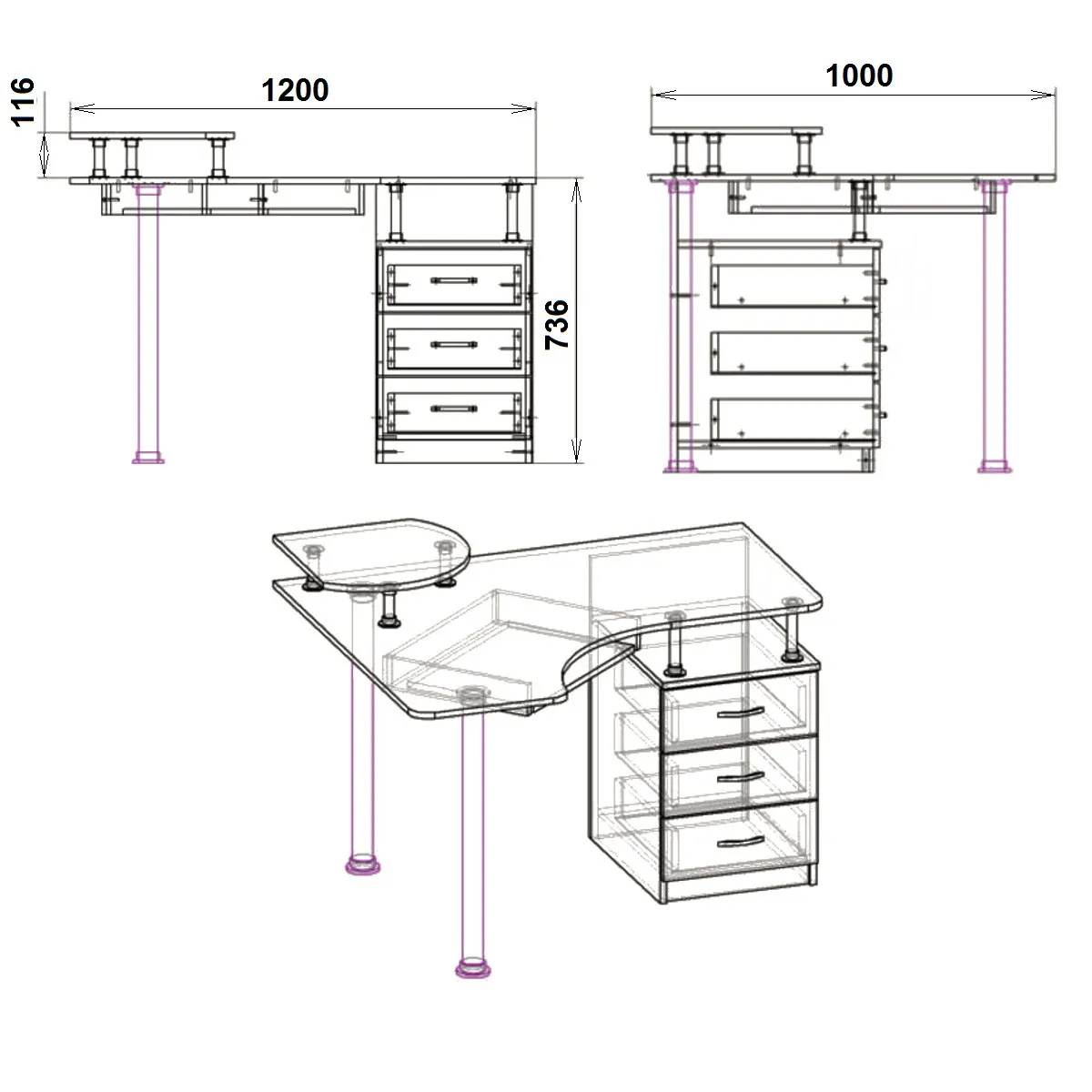 Masa de birou Kompanit СУ-2, Wenge