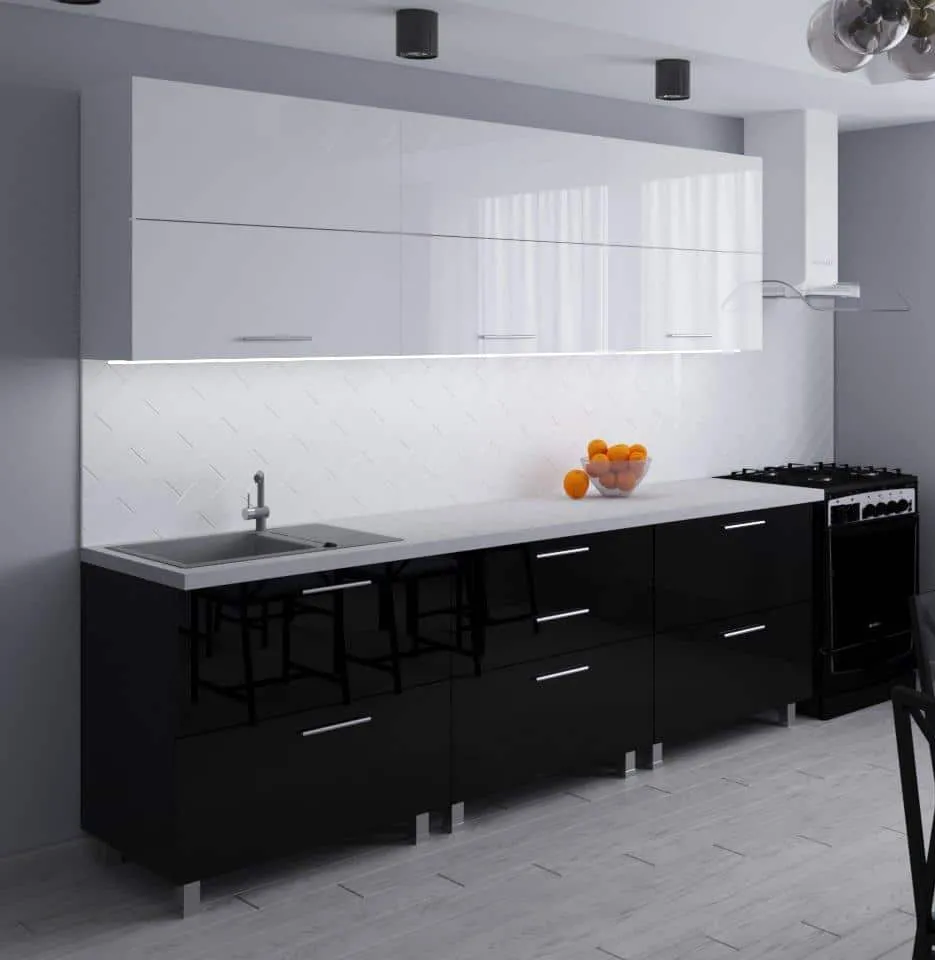 Bucatarie Bafimob Blum 2.4 m (MDF High Gloss), Alb/Negru