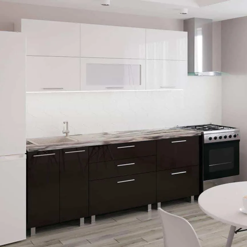 Bucatarie Bafimob Blum 2.0 m (MDF High Gloss), Alb/Negru