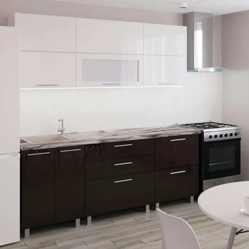 Bucatarie Bafimob Garis 2.0 m (MDF High Gloss), Alb/Negru