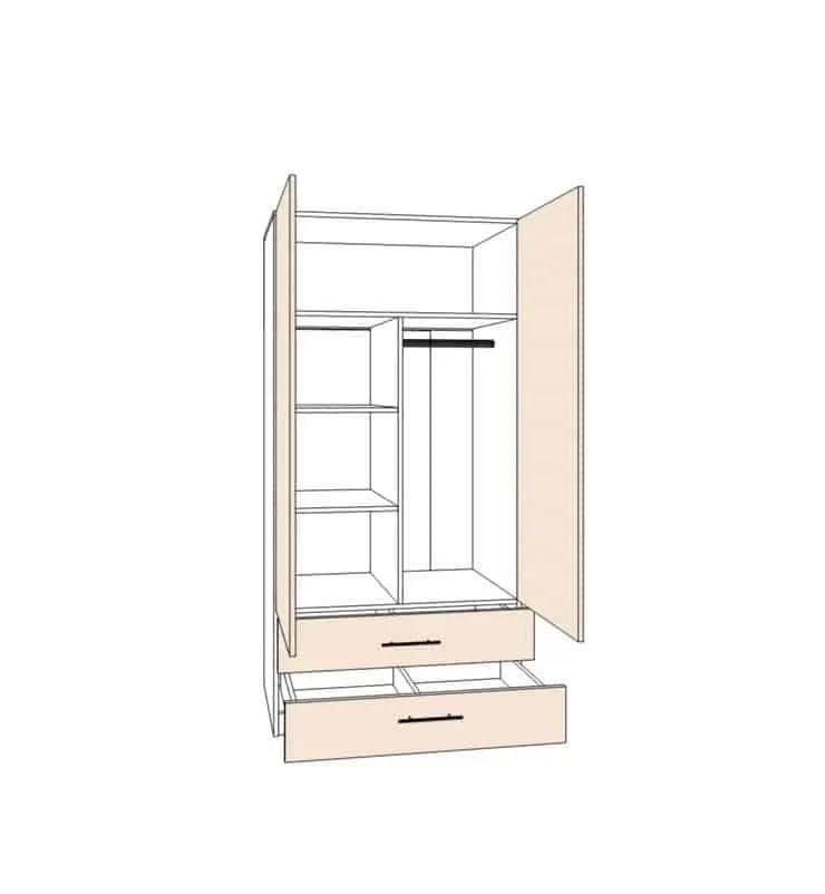 Dulap PS ȘХ-120(2) (120 cm), Corton Stejar/Alb Luciu