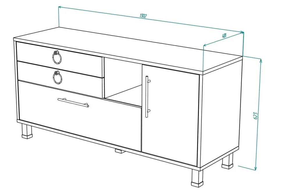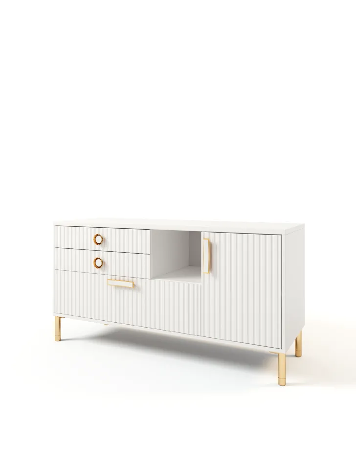 Comoda TV ML-Mobila Velvet № 1 (130 cm), Alb/Auriu