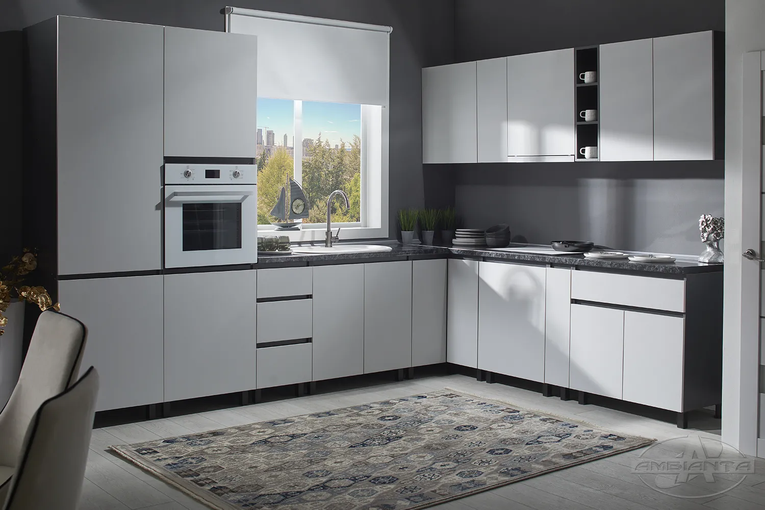 Modul inferior Ambianta Astra 900 Cl de colt Pal, Gri
