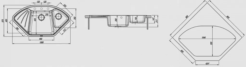 Chiuvetă de bucătărie Florentina Capri 1060x575 mm, Negru (VOR56791)