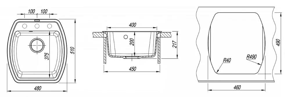 Chiuvetă de bucătărie Florentina Nire 480x510 mm, Cafeniu (VOR56828)