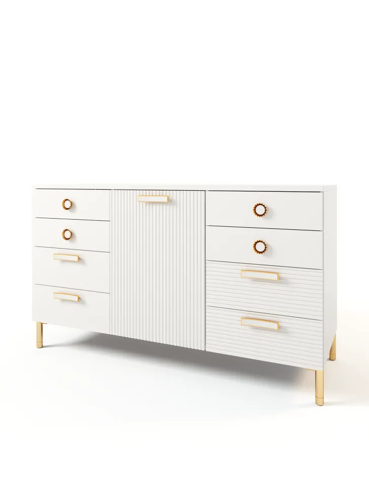 Comodă ML-Mobila Velvet №12 (150 cm), Alb/Auriu