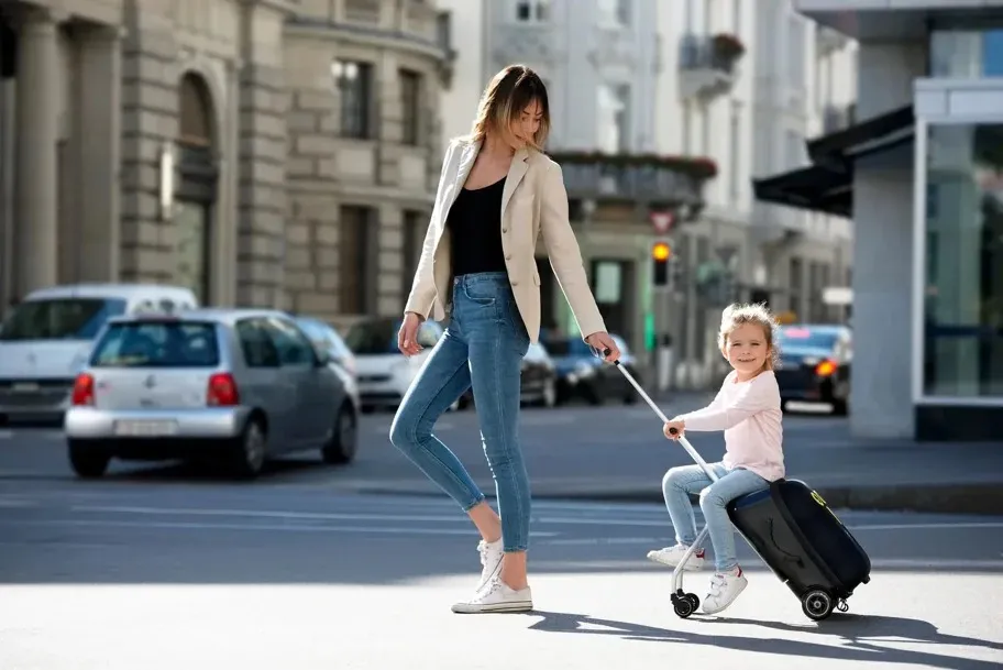 Ride-on, valiza, troller si carucior – toate intr-un singur produs! Micro Eazy Luggage este valiza perfecta pentru calatoriile alaturi de copilul dvs.
