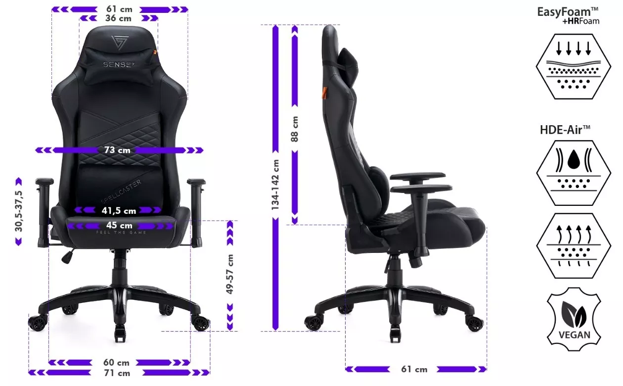 Fotoliu de gaming Sense7 Spellcaster Senshi Edition XL, Black