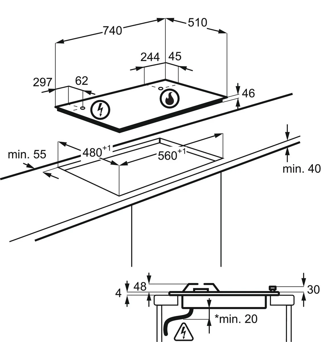 Plită gaz AEG HKB75453NB Black