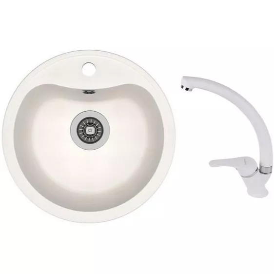 Set chiuvetă de bucătărie Dr.Gans Dora, 435x435 mm, Alb + Baterie SanDonna F1069 alb (VOR57254)