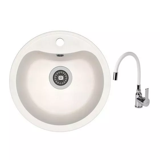 Set chiuvetă de bucătărie Dr.Gans Dora, 435x435 mm, Alb + Baterie SanDonna F9995 alb (VOR57124)
