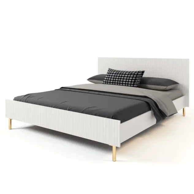 Pat ML-Mobila Velvet N14, 160 x 200 cm fara suport saltea, Alb/Auriu