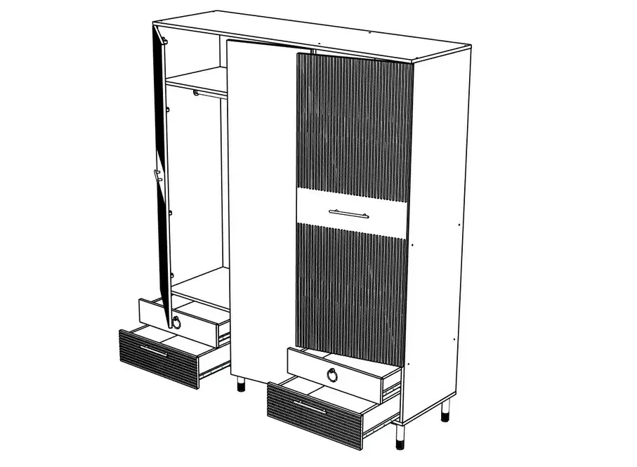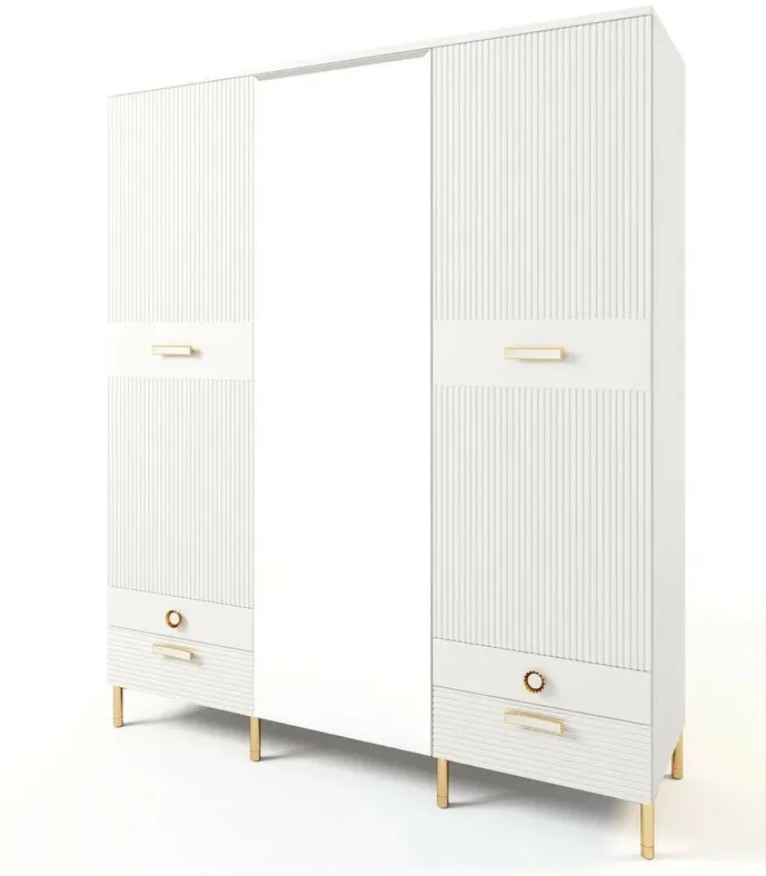 Dulap ML-Mobila Velvet N6 (180 cm), Alb/Auriu