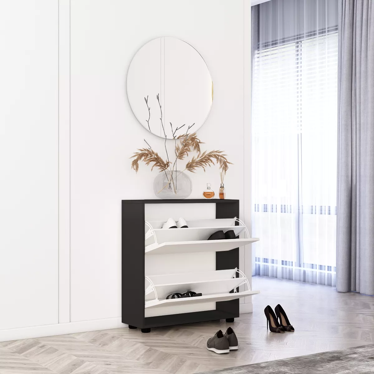 Pantofar Mobildor Leo 50 (50x27x86H), Anthracite/White