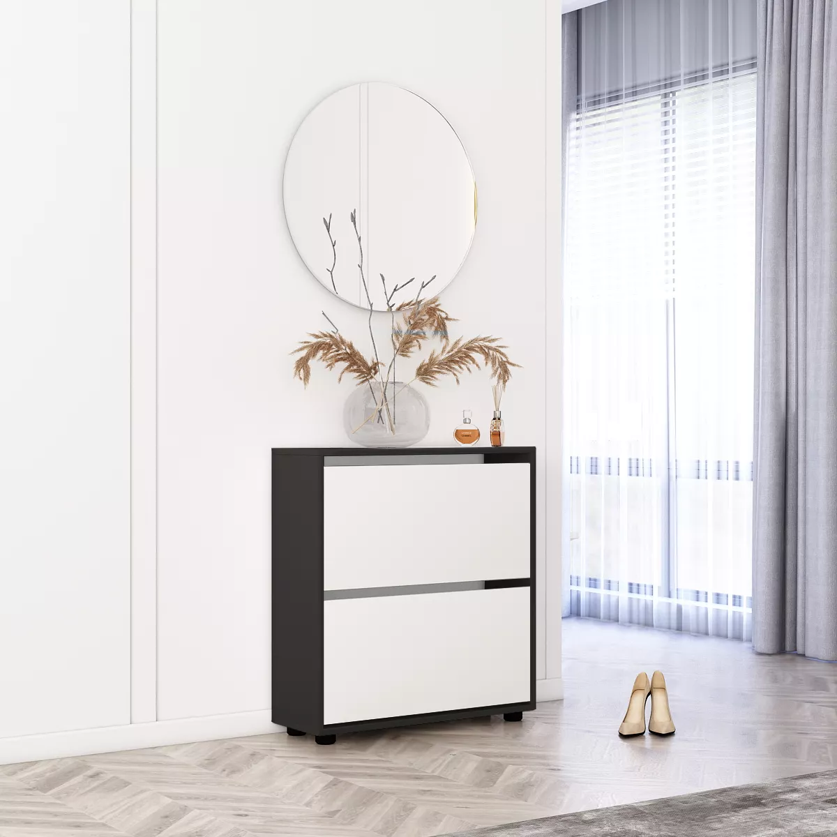 Pantofar Mobildor Leo 80 (80x27x86H), Anthracite/White