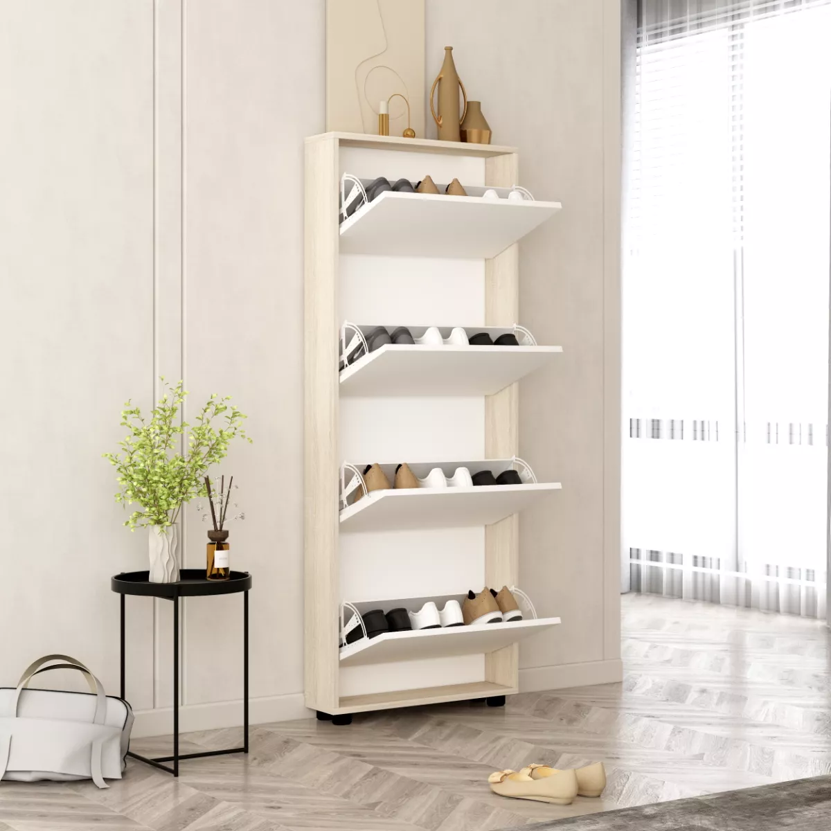 Pantofar Mobildor Leo Slim 90 (90x16x164H), Sonoma/White