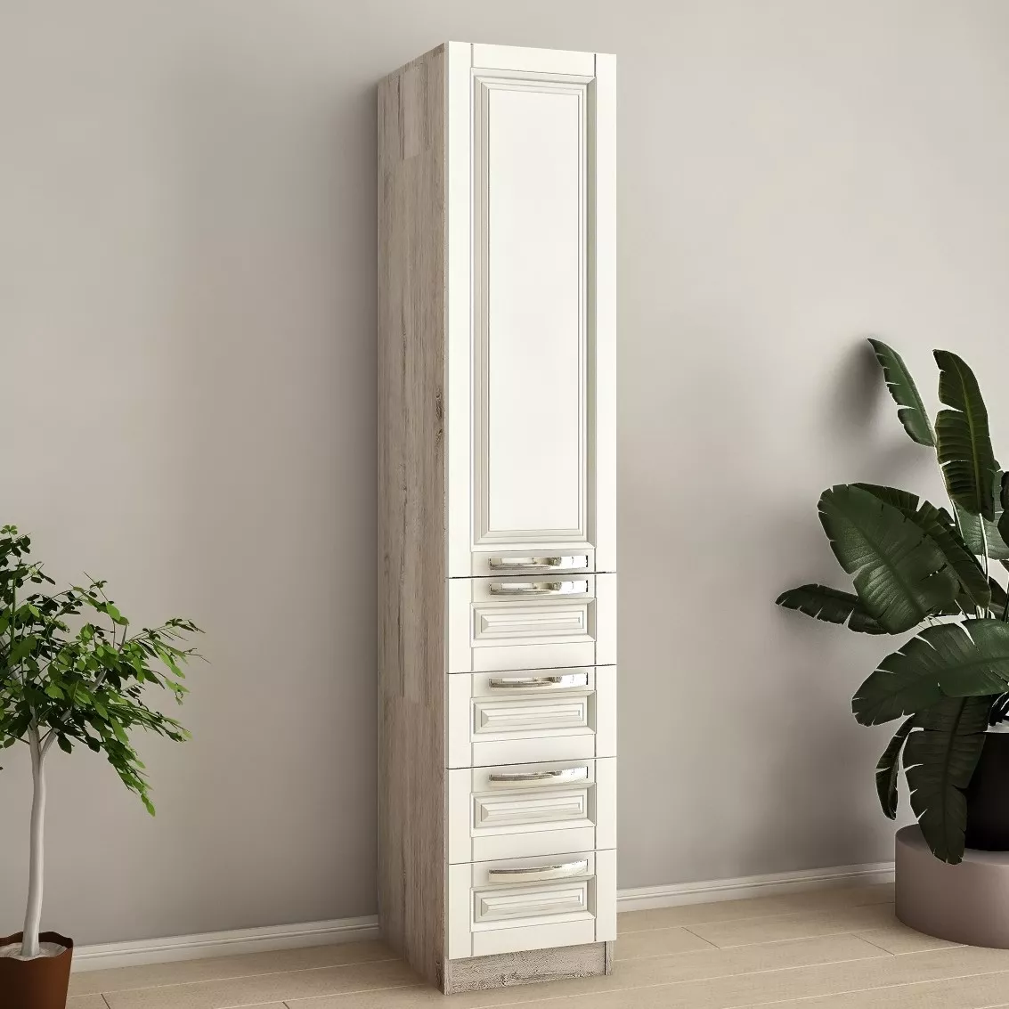 Dulap penal Bafimob PF-40 (4 sertare) (40 cm) cu elemente frezate, Corton Stejar/Alb stejar