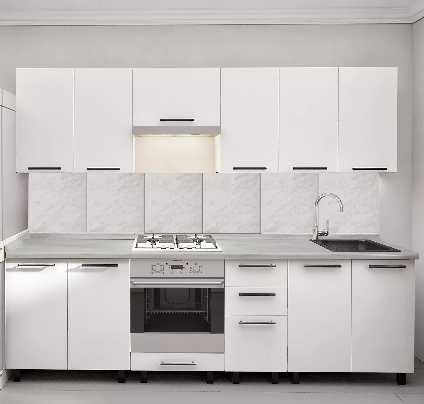 Bucatarie Bafimob Iulia 2.6 m, MDF vopsit, fațadă Neted, Bej mat