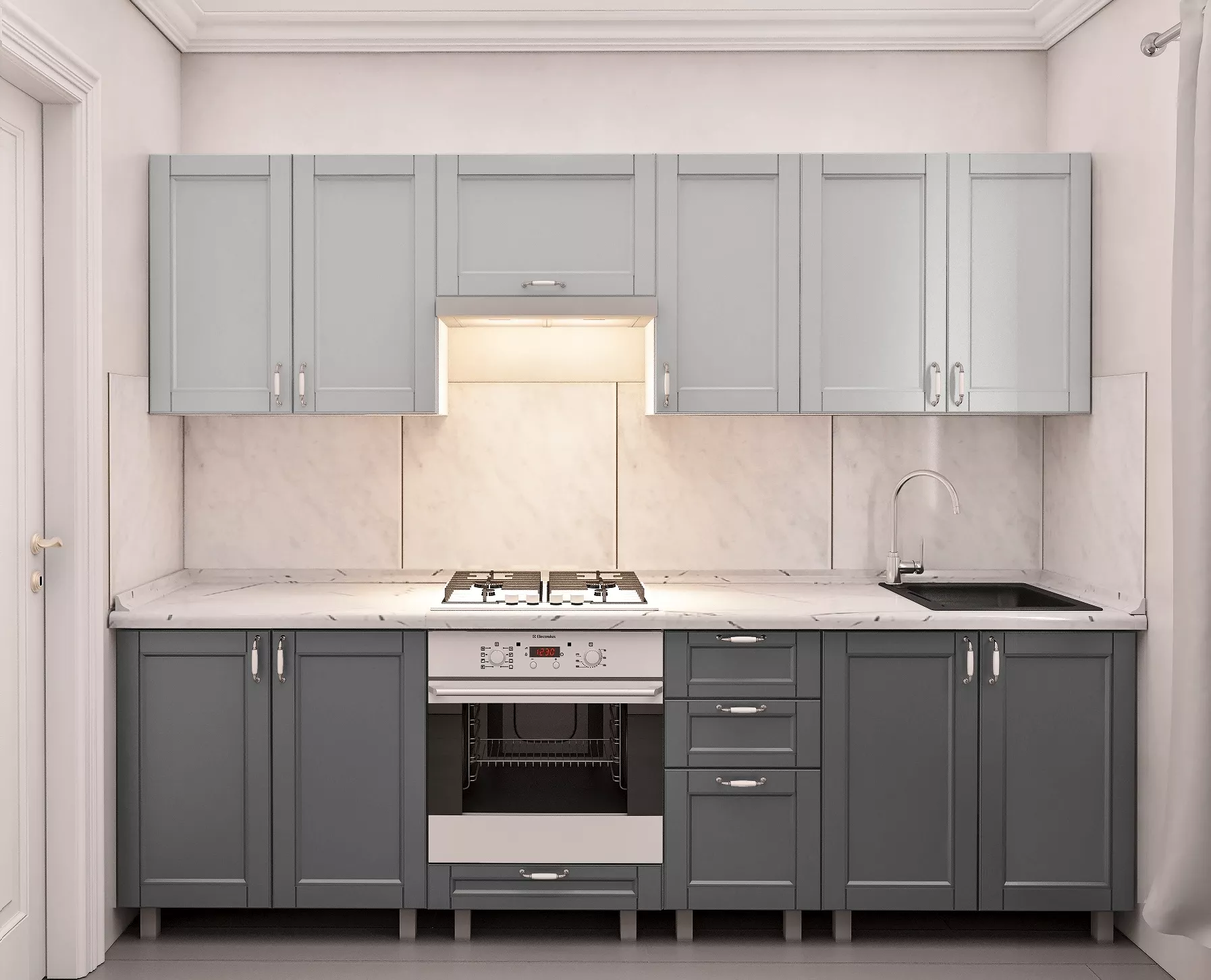 Bucatarie Bafimob Iulia 2.6 m, MDF vopsit, fațadă frezată Modern, Gri deschis mat/Gri mat