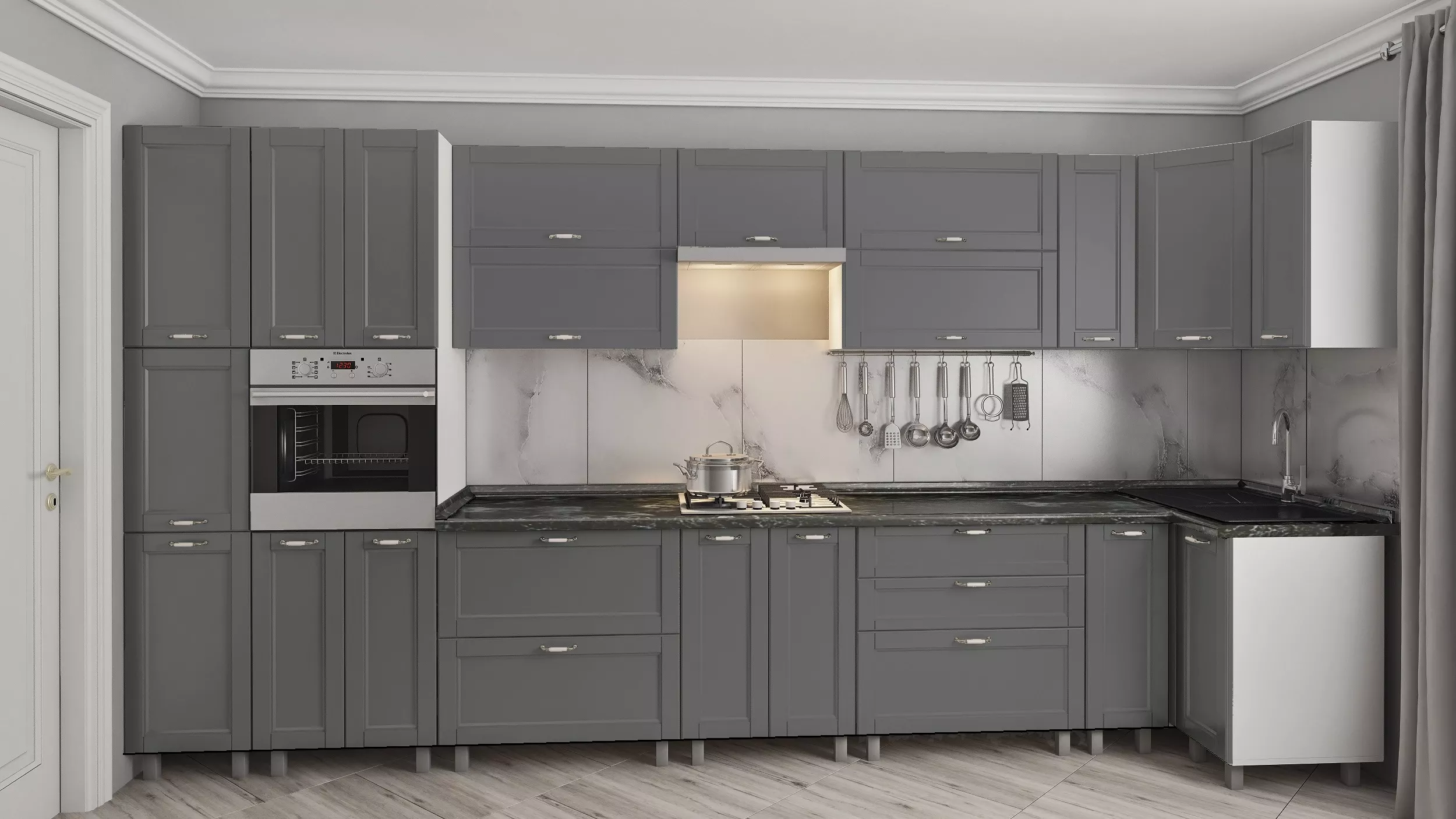 Bucatarie de colț Bafimob Eco 4,1х0,9 m, MDF vopsit, fațadă frezată Modern, Gri mat