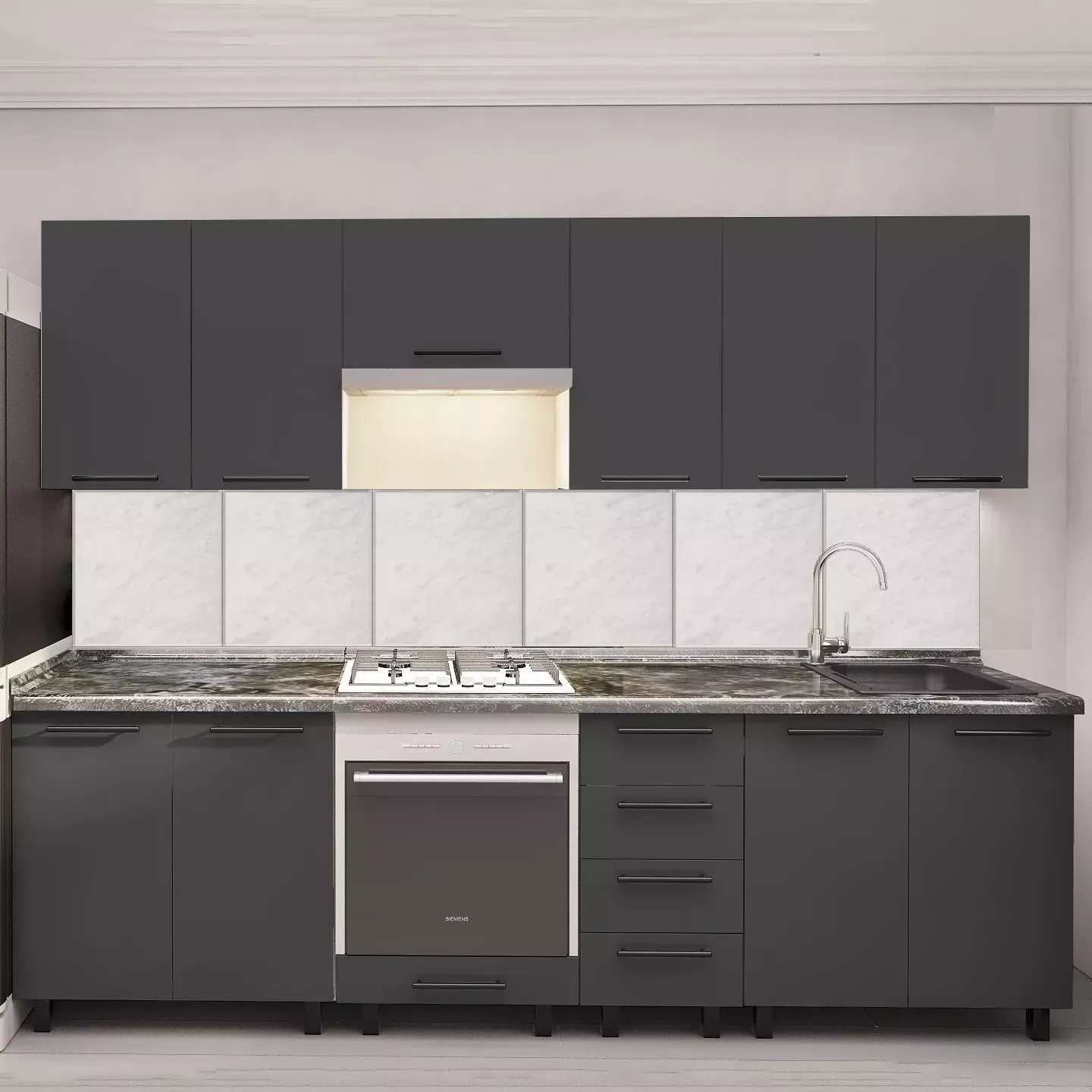 Bucatarie Bafimob Iulia 2.6 m, MDF, cu fatade din panouri mate AGT (Trendy Panel) Gri mat (726 Storm Grey)