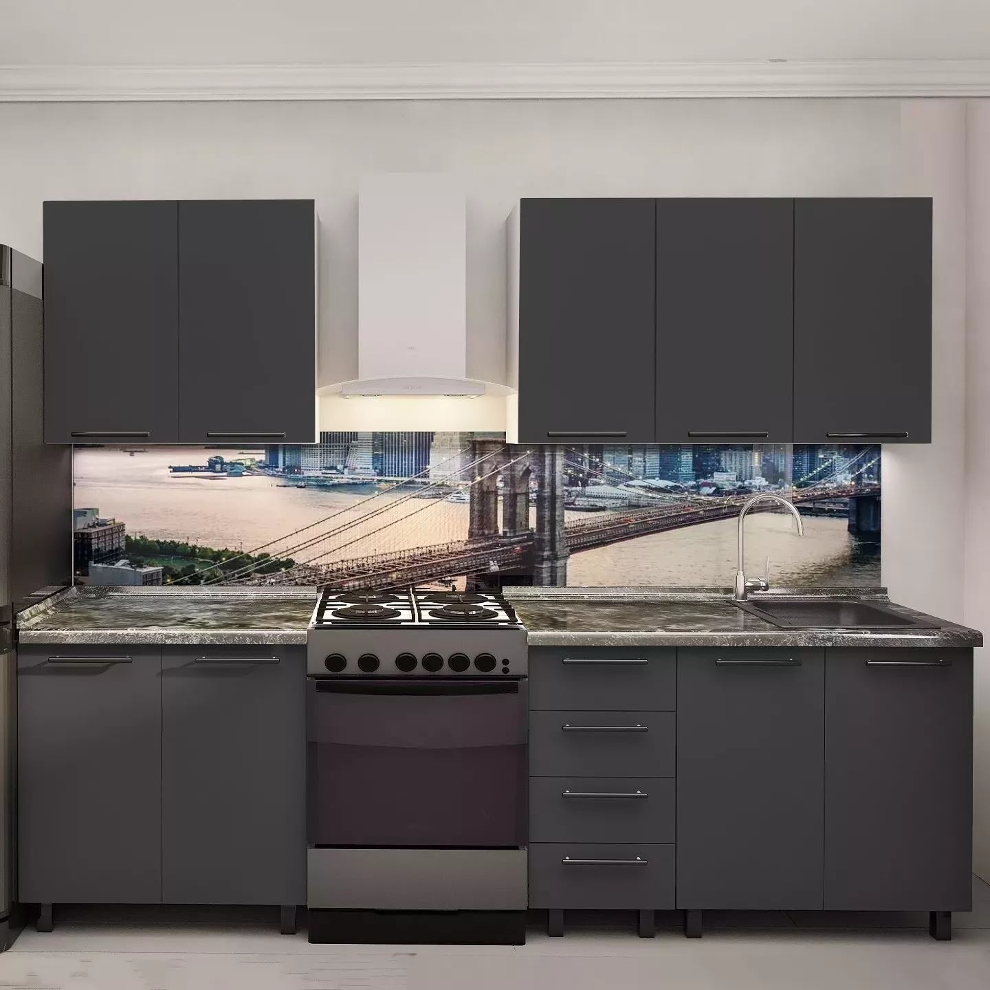 Bucatarie Bafimob Elena 2.0 m, MDF, cu fatade din panouri mate AGT (Trendy Panel) Gri mat (726 Storm Grey)