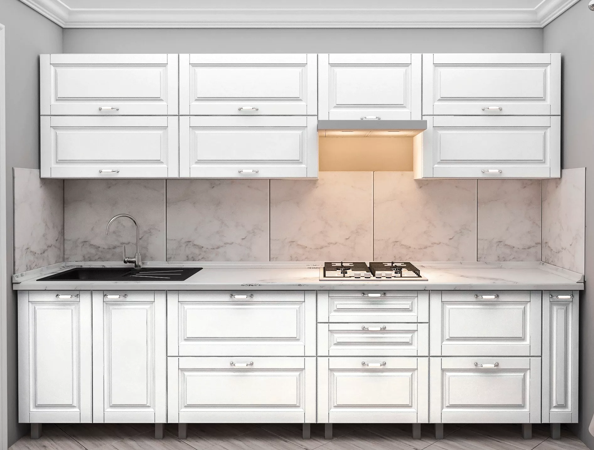 Bucatarie Bafimob Quadro 3.0 m, MDF vopsit, fațadă frezată Clasic, Alb mat