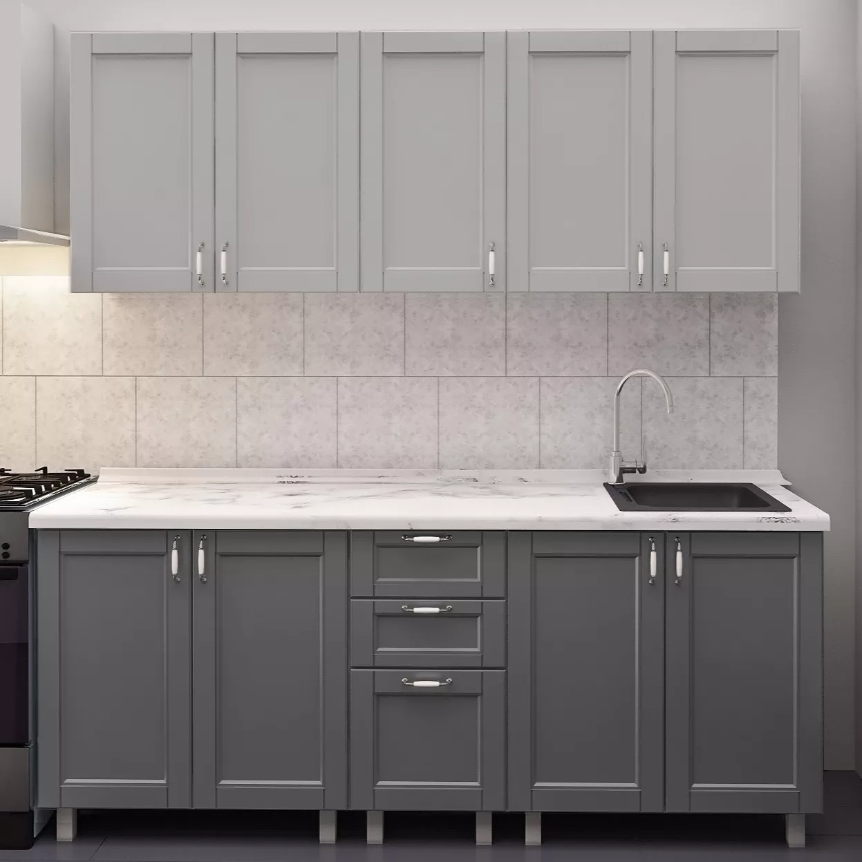 Bucatarie Bafimob Elena 2.0 m, MDF vopsit, fațadă frezată Modern, Gri deschis mat/Gri mat