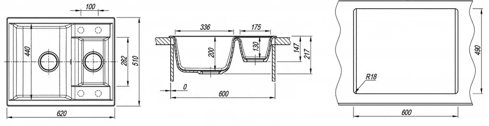 Chiuvetă de bucătărie Dr.Gans Astra 620K, 620х510 mm, Gri (VOR56653)